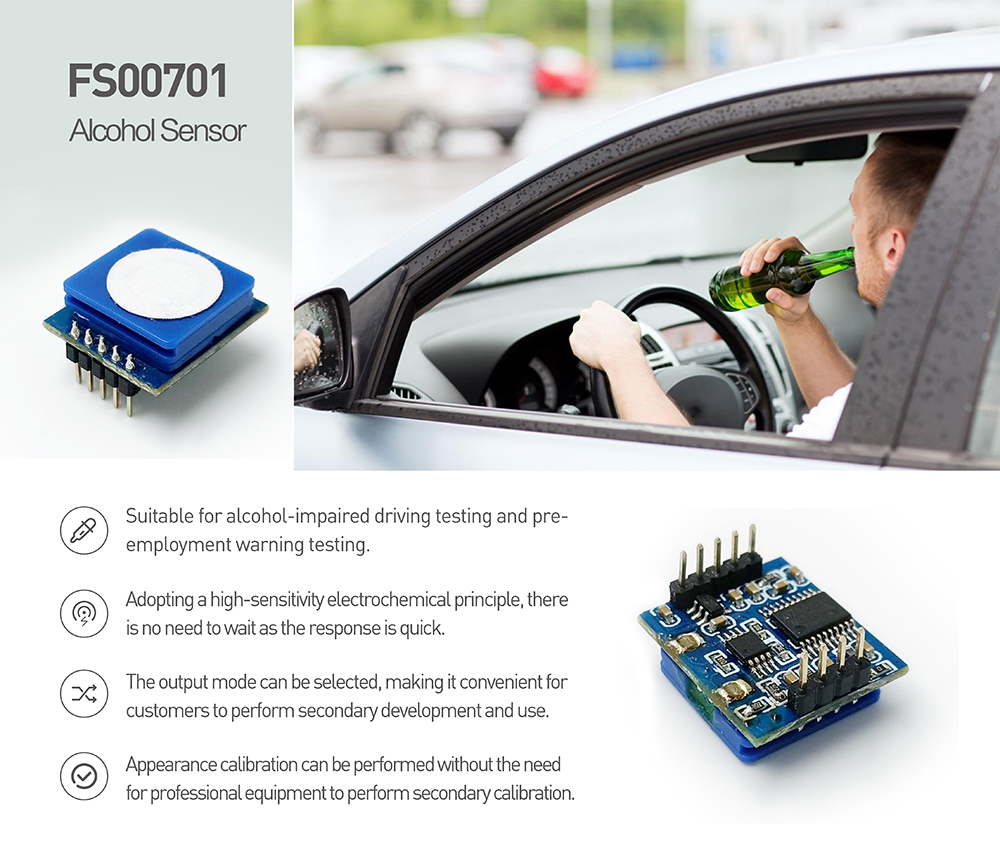 FS00701 0-500ppm 고정밀 C2h5oh 알코올 센서 음주 측정기 전기 화학 센서 모듈 알코올 호흡 테스터 [FOSENSOR-22]