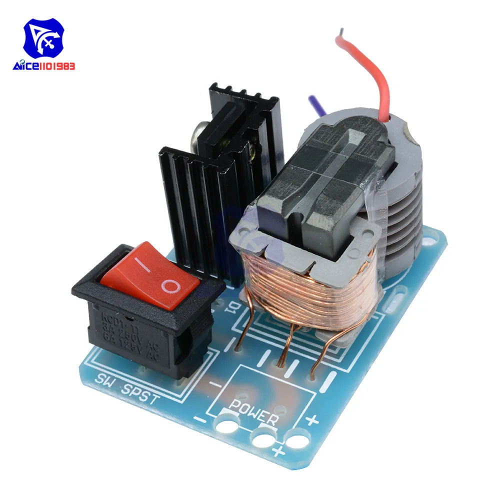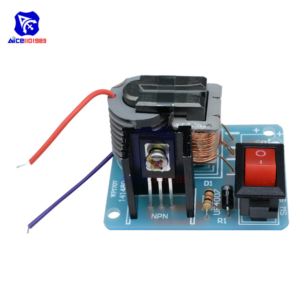 입력 전압: DC 3.7V-4.2V (제한 12v, 손상되기 쉬운 권장하지 않음, 이 변압기는 12V 입력 전압에도 동일하게 적용 가능, 피드백 저항의베이스가 약 150Ω ~ 1.5KΩ 으로 증가해야하며 작은 조정 또는 연소 된 트랜지스터 또는 변압기를 교체하려면 저항이 커야합니다)