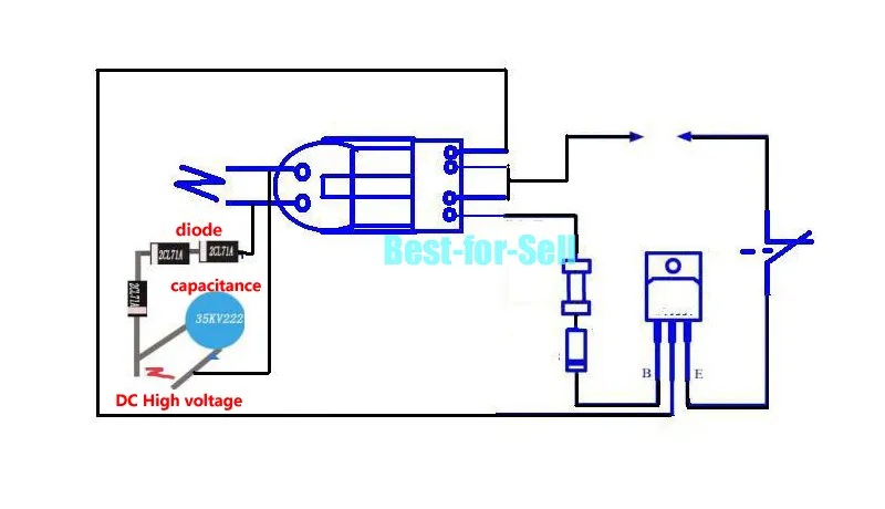 3). 생산 성공 후 고전압 커패시터와 전압 더블러 회로로 구성된 3 개의 고전압 정류기에 대한 출력 액세스가 발생하면 DC 고전압, 당신은 만들 수 있습니다 음이온 발생기, 배선 다이어그램은 다음과 같습니다: