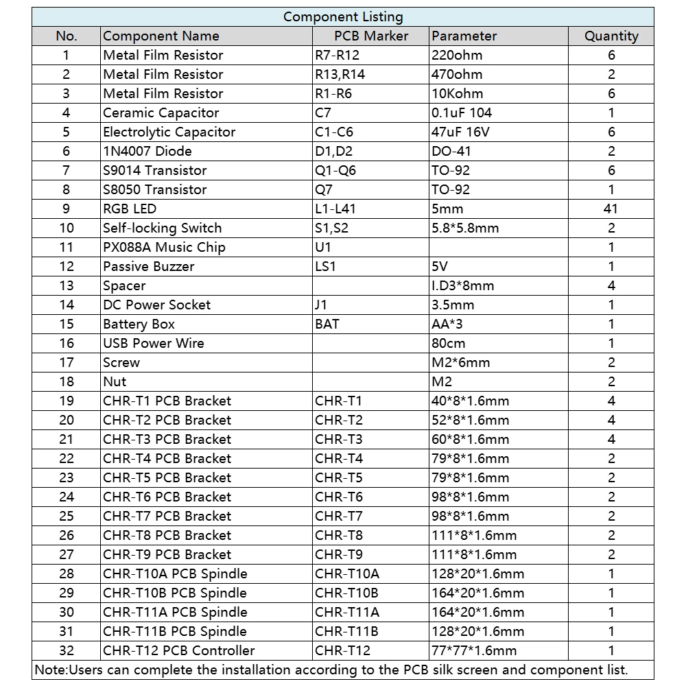 그것은 a3D RGB 음악 크리스마스 트리 키트는 회로 기판으로 구성되어 있으며 37pcs LED 플래시를 음악과 rgb의 크리스마스 트리를 보여줄 수 있습니다 (야간 환경이 더 좋은보기).