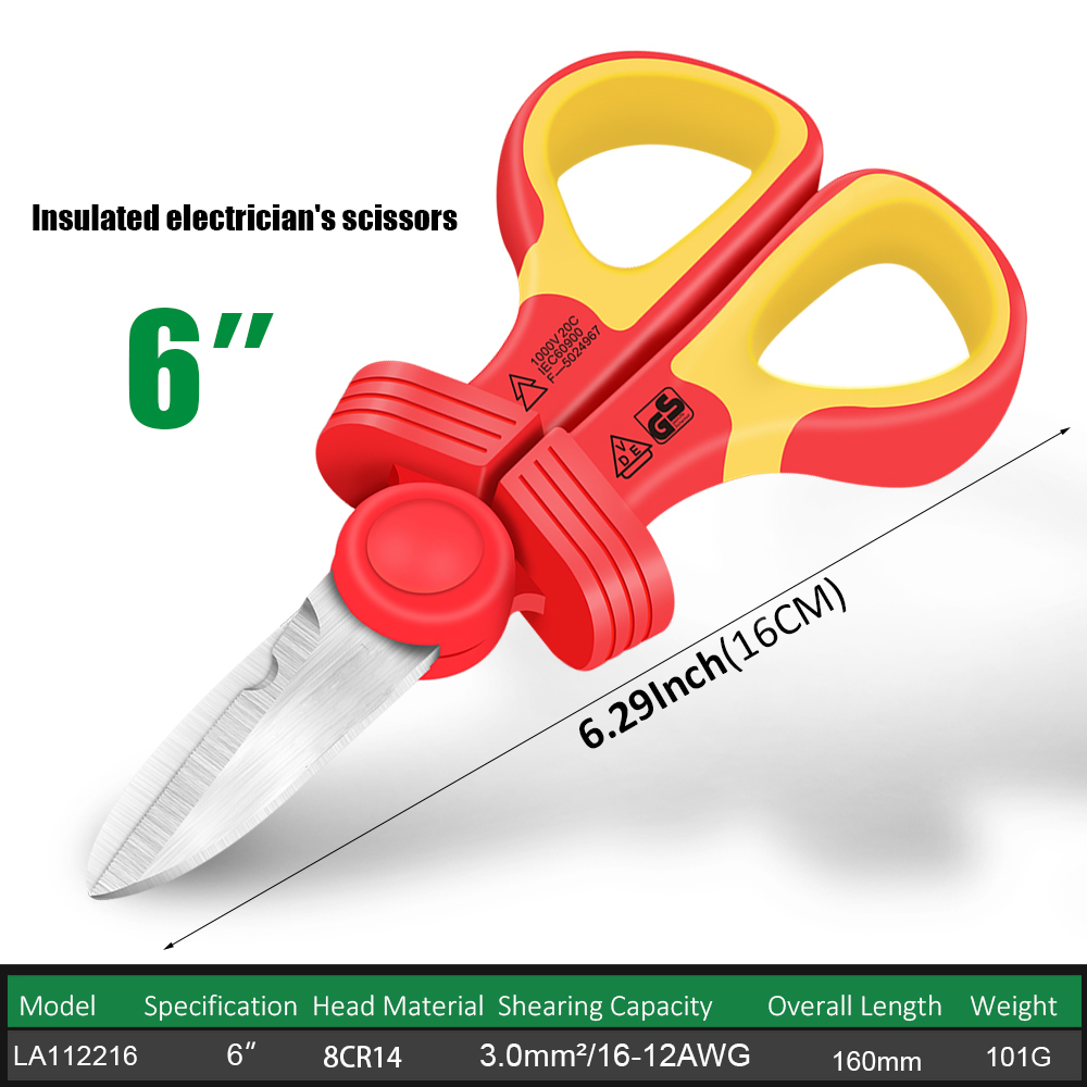 LAOA VDE 절연 전기 가위 저항 전압 1000V 다기능 와이어 가위 전기 DIY 가위 [LAOA-92]