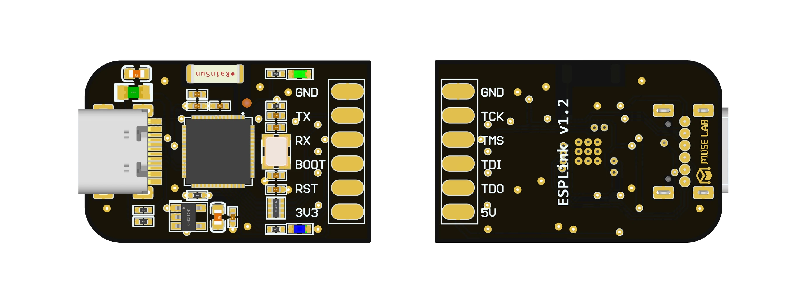 ESPLink는 ESP8266/ESP32/ESP32-S2/ESP32-C3/ESP32-S3 등과 같은 Espressif의 모든 ESP 시리즈 칩 디버깅을 지원하는 Muse Lab에서 만든 디버깅 도구입니다. ESPLink는 usb-to-serial (기존 사용과 호환), 드래그 앤 드롭 프로그래밍 및 JTAG 디버그를 지원하므로 개발자가 개발하고 테스트 할 때 편리합니다.